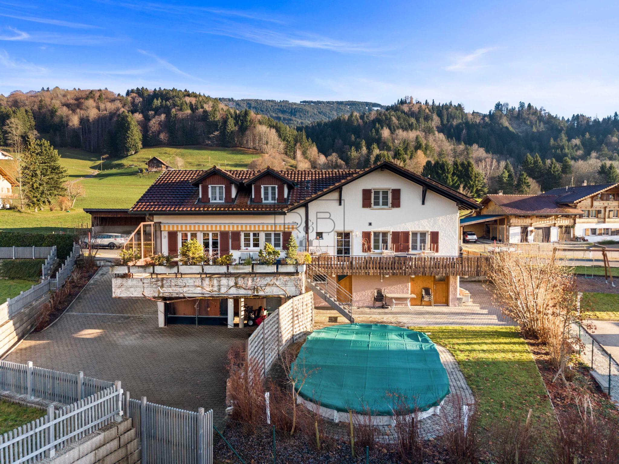 Située dans un cadre agréable à La Roche (FR), cette belle maison offre une opportunité rare grâce à ses deux appartements indépendants, alliant confort de vie et excellent potentiel. Le premier logement, un appartement de 4.5 pièces d’environ 127 m², séduit par ses volumes généreux et sa luminosité. Le second, un appartement de 3.5 pièces d’environ 89 m², propose un espace de vie confortable, idéal pour un logement indépendant, un projet intergénérationnel ou un rendement locatif. La maison bénéficie d’équipements modernes, notamment une pompe à chaleur ainsi que des panneaux solaires photovoltaïques et thermiques, assurant une gestion énergétique efficace. L’ensemble offre un cadre de vie agréable et fonctionnel. Les extérieurs invitent à la détente avec une piscine, parfaite pour profiter des beaux jours, tandis qu’un grand garage double complète ce bien en apportant confort et praticité au quotidien.